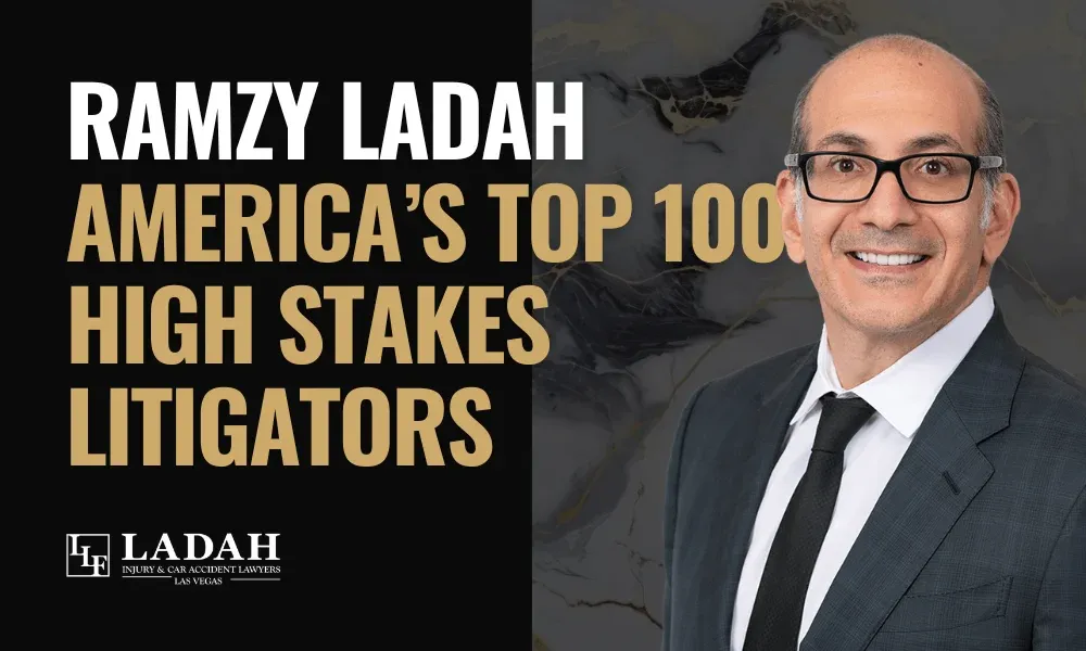 Ramzy Ladah has been named to America’s Top 100 High Stakes Litigators list, reserved for attorneys with exceptional results in complex cases. Selected through an independent review process, this recognition reflects Ramzy’s proven ability to handle cases with major financial stakes and life-changing consequences, reinforcing Ladah Injury & Car Accident Lawyers’ commitment to elite personal injury representation in Las Vegas.