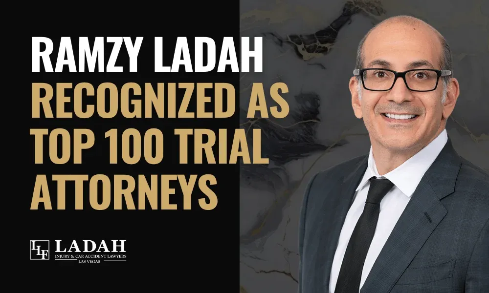 Ramzy Ladah has been named to The National Trial Lawyers’ Top 100, a selective honor for attorneys with exceptional courtroom ability. Selection is invitation-only, based on peer nominations, third-party research, and demonstrated trial advocacy. This recognition reflects Ramzy’s years of fighting for injured people in Las Vegas and securing the compensation they deserve.